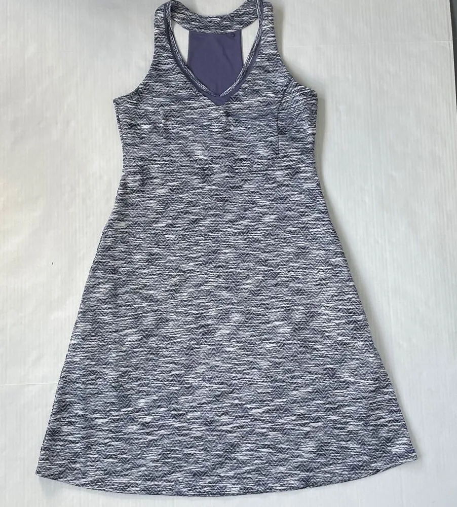 Condition: Great preowned condition Size: Small Color: Grey / Purple Chic MPG dress with wave pattern. Sleeveless design. This Multicolor Geometric patterned travel dress from MPG is a must-have for any sports enthusiast. The dress comes in a size small. It has a racerback, v neck, and pockets with built in shelf bra. The dress is made of a lightweight material of polyester/spandex. Color may vary due to monitor or device settings.