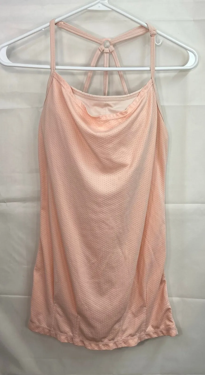 MPG women's peach built in sports bra cutout adjustable activewear tank top Size 6 In excellent used condition Pit to pit 15 inches, length from pit 18 inches Smoke free home! All items are lint rolled before shipping. Colors may slightly vary between images and in person, but I do my best to accurately depict each item's true color! Thank you for checking out my shop—feel free to check out my other listings! :) 0331