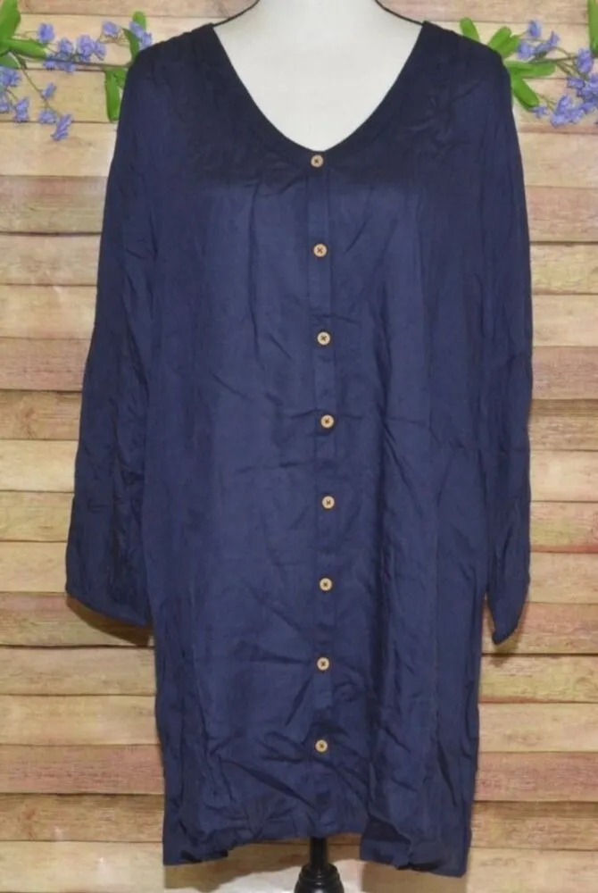 New with tags, this Mudpie tunic shirt dress features a navy blue color, button-up front, and 3/4 sleeves. Casual V-neck design and lightweight material make it perfect for everyday wear. One size fits most. • Navy blue color • Button-up front • 3/4 sleeve design • Casual V-neck • Lightweight and comfortable • One size fits most Location: Section 23 Please SEE measurements of the clothing items to insure fit! Measurements are in the last photo. To check measurements, measures a well fitting garment laying flat unstretched. We double the measurement for bust/chest/waist/hip/thigh and leg opening. Length is measured from shoulder to hem. Inseams are measured along the inseam. When you see TWO measurement for one area it is because the item has stretch and one is laying flat and the other is stretched. 🙂 Size: Womens OS Condition: New With Tags Thanks for looking at my listing. I have been selling online for several years and take pride in the items that I am listing and feel they will make a great addition to someone's wardrobe or home. All the items I am listing have been checked by several people and do not have any flaws such as holes, rips, or stains. Any issues a piece may have will be disclosed and will be included in the photos. Check out my other items to save on shipping! Please feel free to ask any questions you might have we are happy to answer 🙂 Happy Shopping!