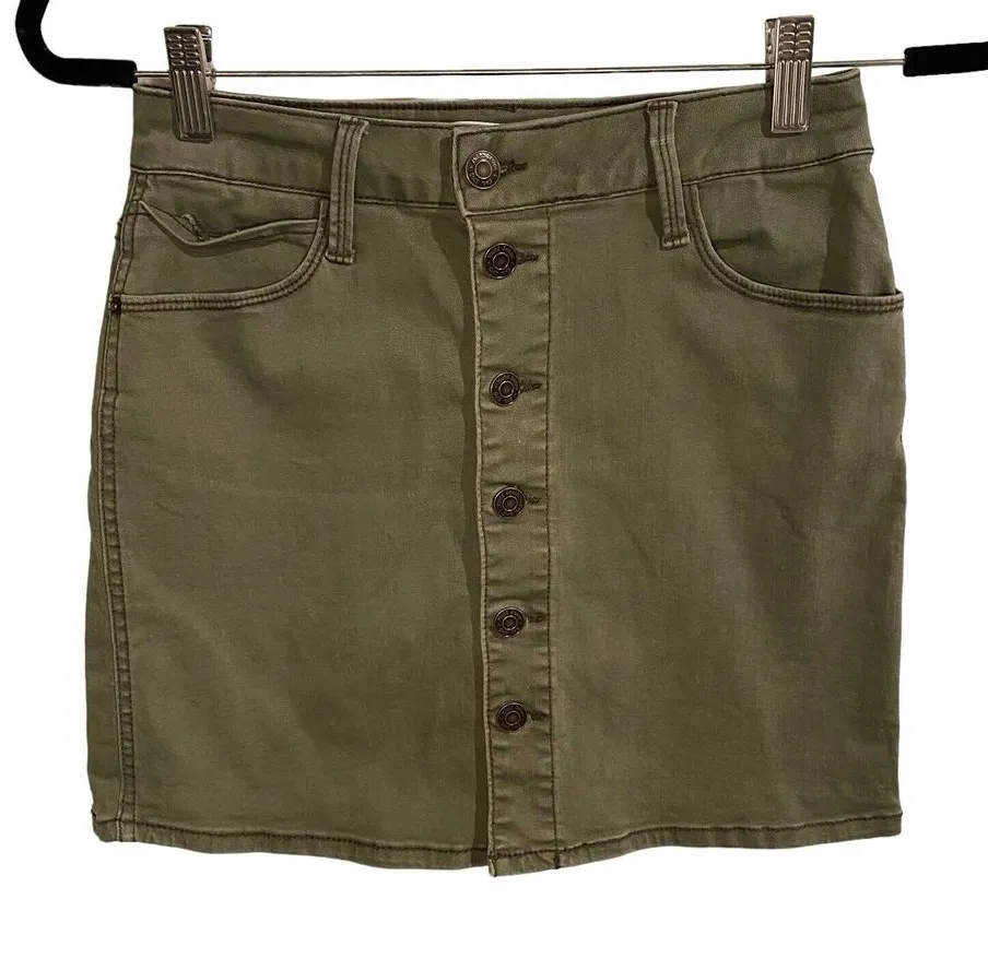 Elevate your wardrobe with this stunning olive green mini skirt from Mudd. This skirt features a sol... Show more