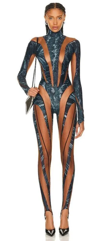 Mugler's long-sleeve Illusion catsuit features sheer mesh inserts contrasting printed panels. Comple... Show more