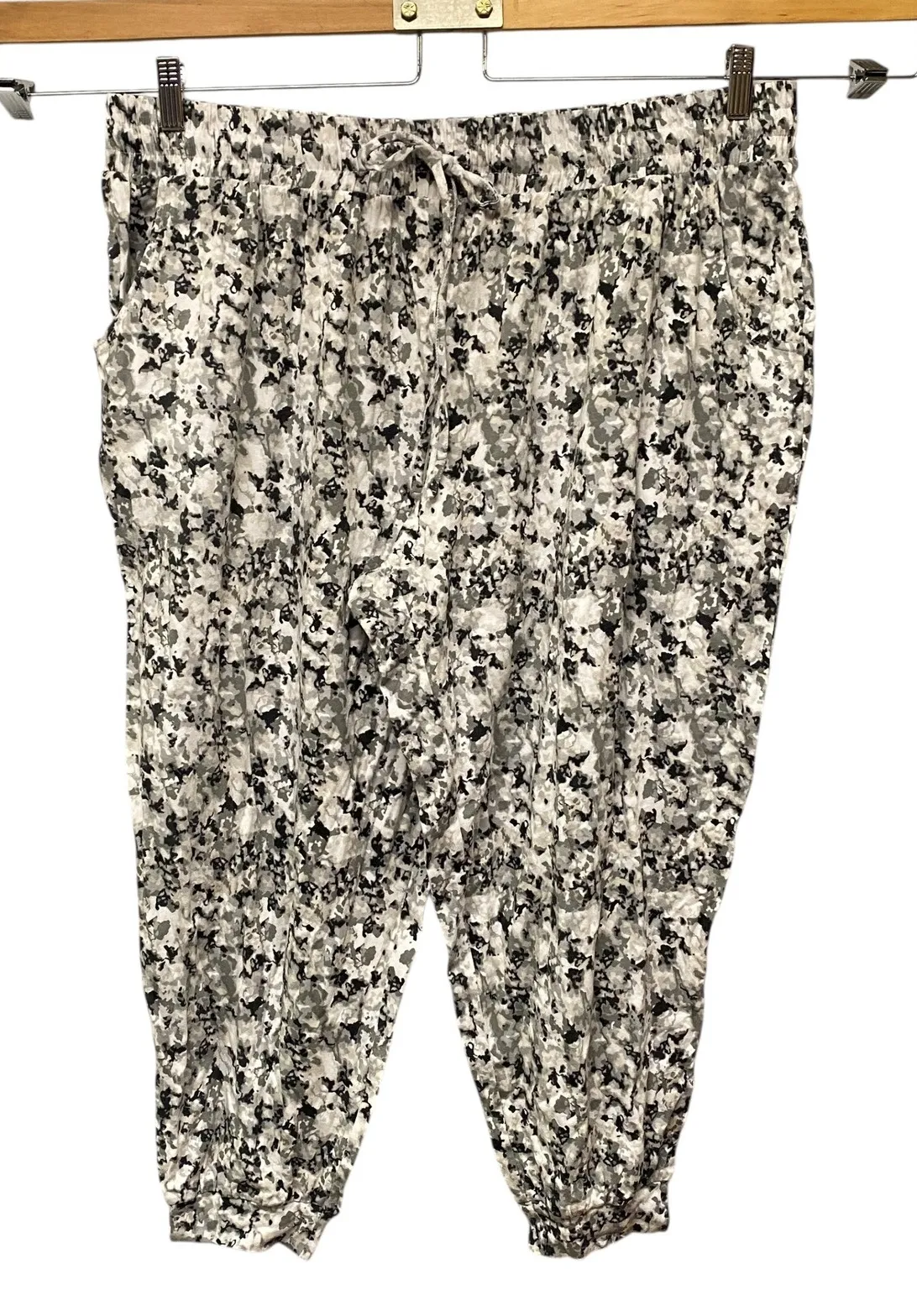 Preloved in excellent condition Women's size P3X Please see all photos for closed up details. Measurements: • Waist: 32 in • Inseam: 22 in • Rise: 11 in • Leg Opening: 10 in Style: Jogger Department: Women Leg Style: Tapered Type: Pants Fabric Type: Knit Features: Pockets, Elastic Waist, Cuffed, Lightweight Closure: Drawstring, Pull On Pattern: Floral Occasion: Casual Fit: Relaxed Front Type: Flat Front Season: Spring, Summer, Fall Garment Care: Machine Washable Keywords: MUK LUKS, jogger pants, floral print, drawstring waist, elastic cuffs, casual wear, loungewear, relaxed fit, women's pants, black, white, comfortable, weekend style