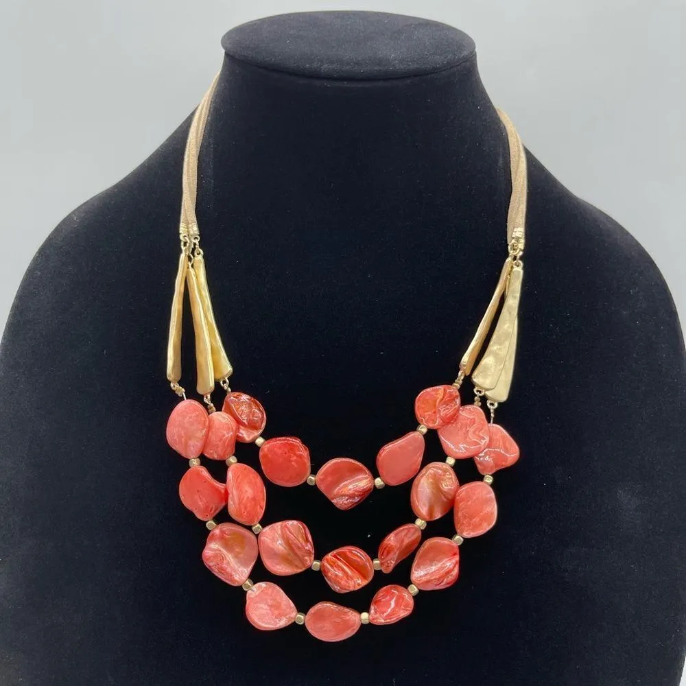 Multi Strand Mother of Pearls on Gold tone & Leather Necklace Orange - $49 - From Louella