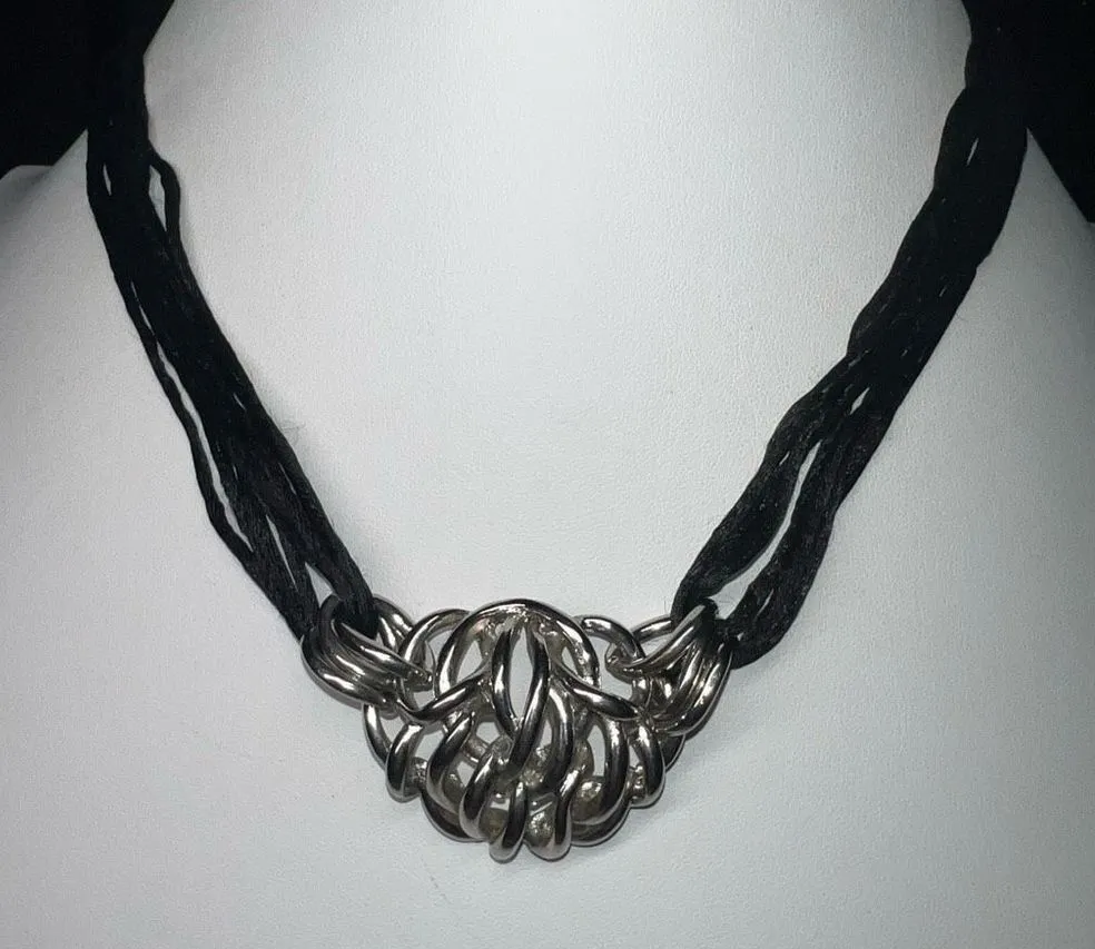 Multi Strand Silk Cord Silver Chunky Choker Necklace‎ Black - $15 - From A Little