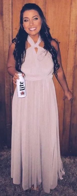 Classic Gown that can be worn infinite ways for any occasion!! One size fits all!! Dress does not come pre-tied/ styled, it is up to you to decide how you’d like to wear the dress!! Elastic waist band. Comes w/ removable bandeau.