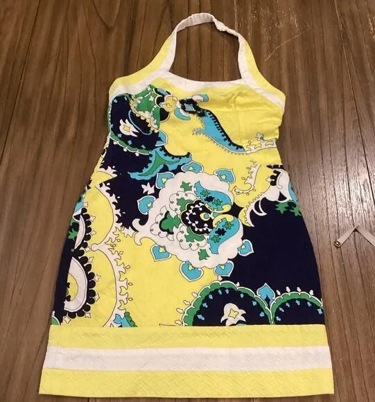 Muse yellow blue halter retro Floral Tropical Halter waffle cotton Dress Size 6 - $49 - From Miriam
