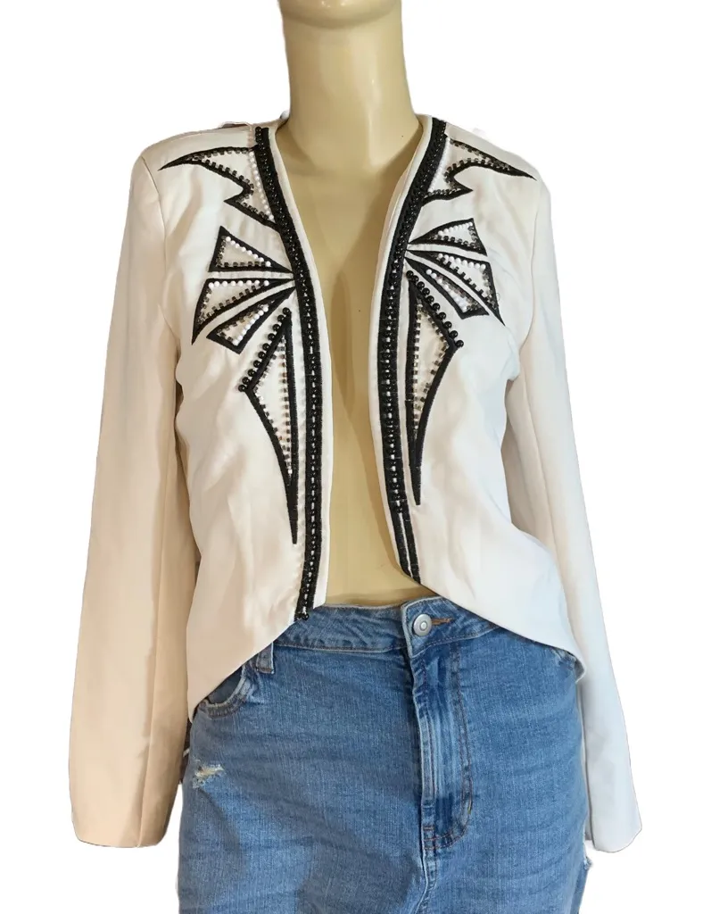This listing is priced for the blazer pictured only. Muses by Shop -off white black and silver -bea... Show more