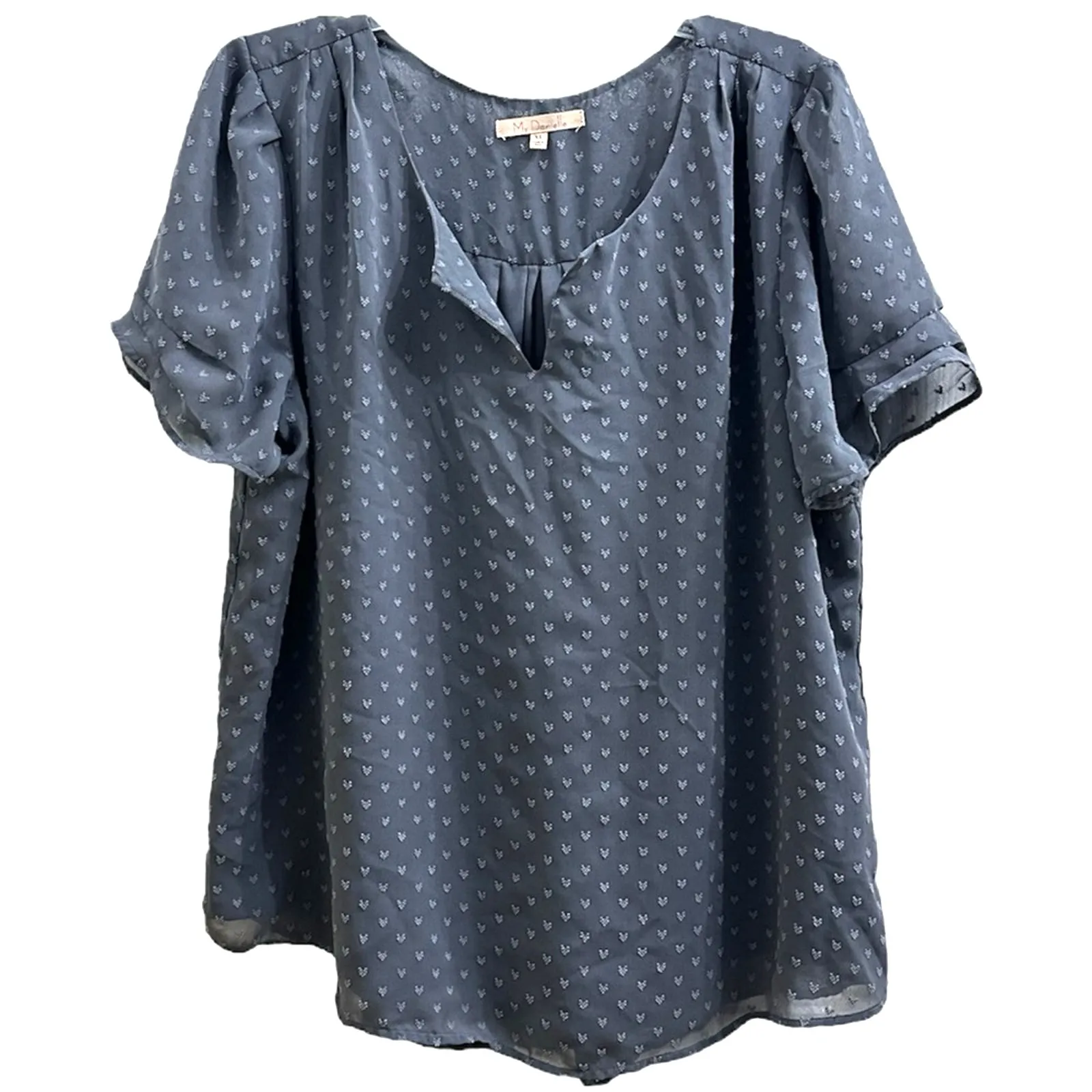 My Danielle brand blouse. Medium gray color. Sheer top layer with textured tone on tone heart pattern. Similar to swiss dotting but with flocked hearts. Lined. Both polyester material. Folded detail on short sleeves. Rounded neckline with V. Machine wash delicate. Size XL. Great used condition. Great with jeans casually or dressed up with a skirt/slacks. Work appropriate. Bust 23” across, waist 24.5” across. Tags: cottagecore, prariecore, lightacademia, normcore, classic, quality, dollette, barbiestyle, bratz, Y2K, bohochic, lagenlook, earthy, tomatogirl, hippy, hippie, basic, coastalcowgirl, bohowestern, country, businesswear, workwear, officewear, twee, quirky, indiepop, ethereal, vacation, travel, cruise, breezy