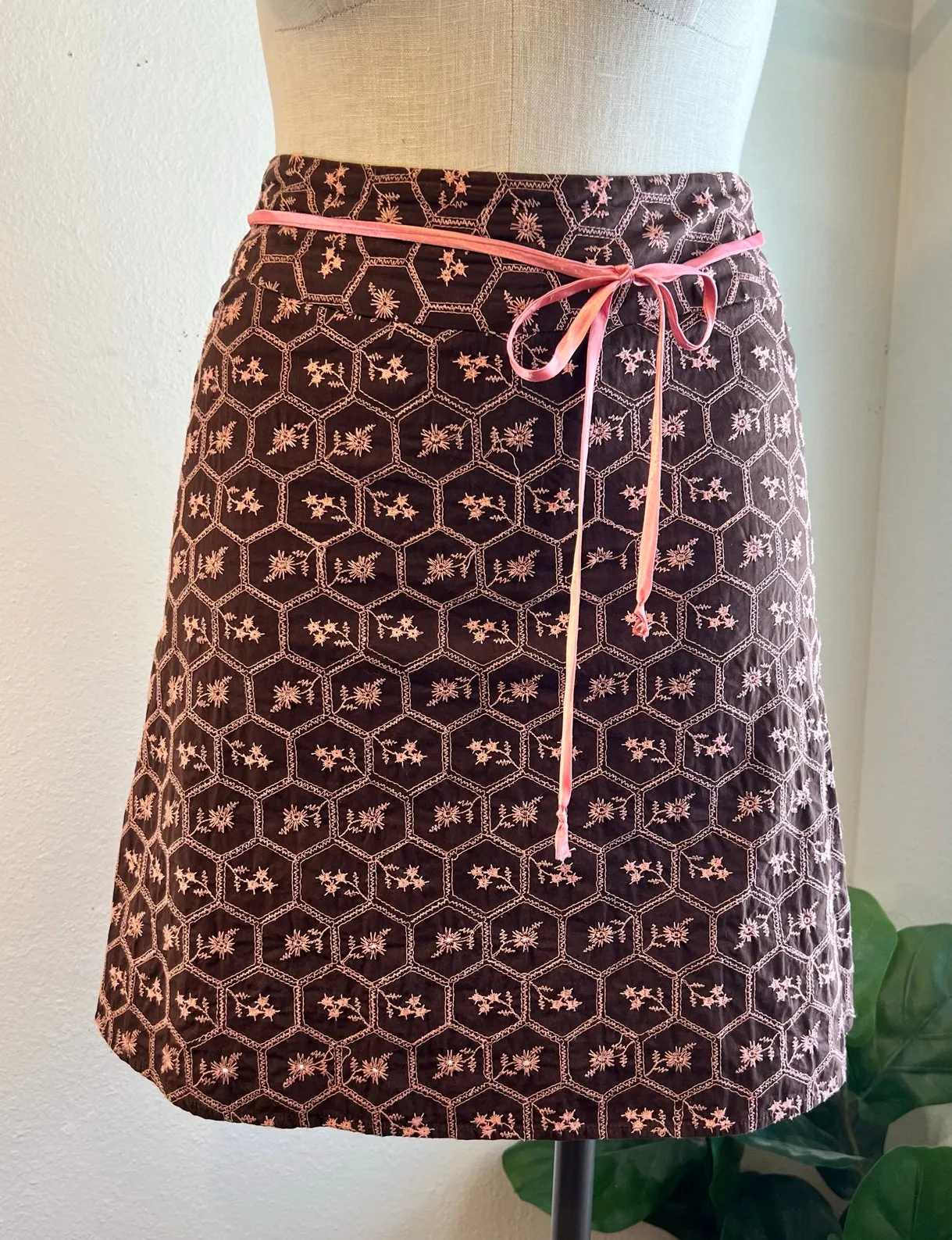 Flat Lay Measurements: Length- 20 Waist-15.5 Size- 7/8 = medium Color- pink/brown Brand- My Michell... Show more