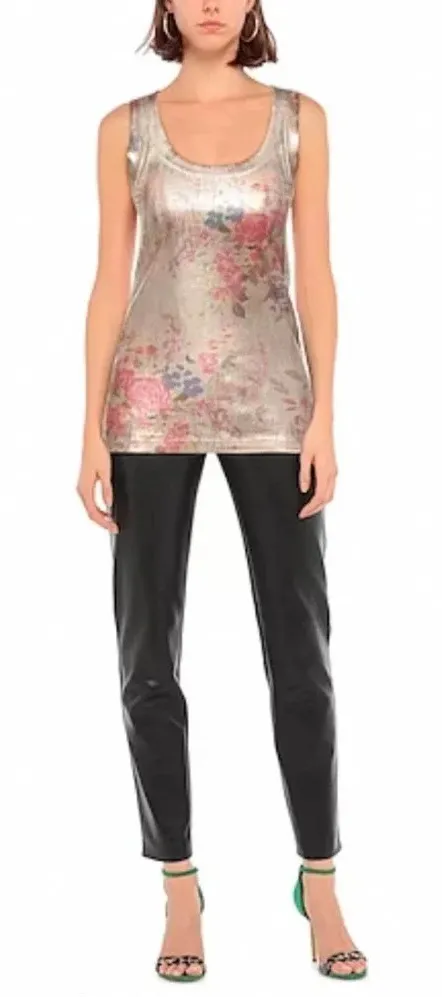 MY TWIN TWINSET Tank Top in Rose Gold Pink Floral Print Plain weave, waxed effect, no appliqués, floral design, round collar, sleeveless, no pockets, stretch 95% Cotton, 5% Elastane Size Large Armpit to armpit is approx 16" Length is approx 25"