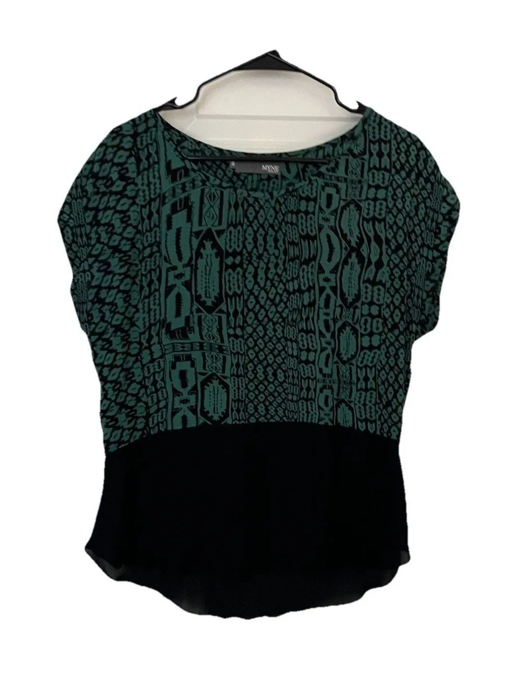 Myne Anthropologie Silk Blouse Size 2 Green Black Geo Print Color Block - $15 - From Rachelle L