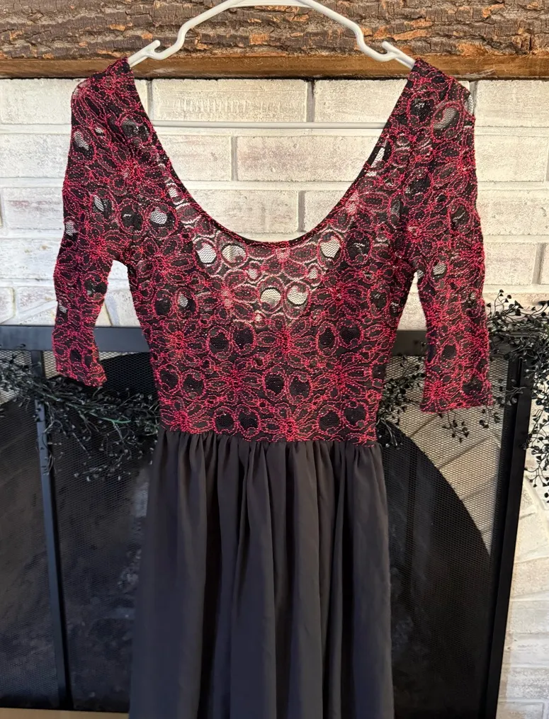 Mystic Red Lace and Black Long Sleeve Dress - $24 - From Alexandria