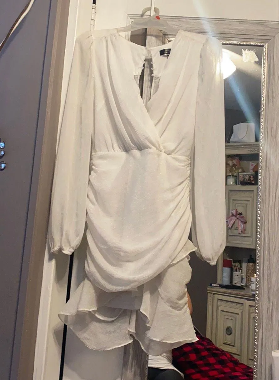 Beautiful women’s white sparkly long sleeve dress size S WORN ONCE for engagement party Great condition. Zipper in the back on bottom Buttons on top. Ruffles on the bottom Sparkly all over
