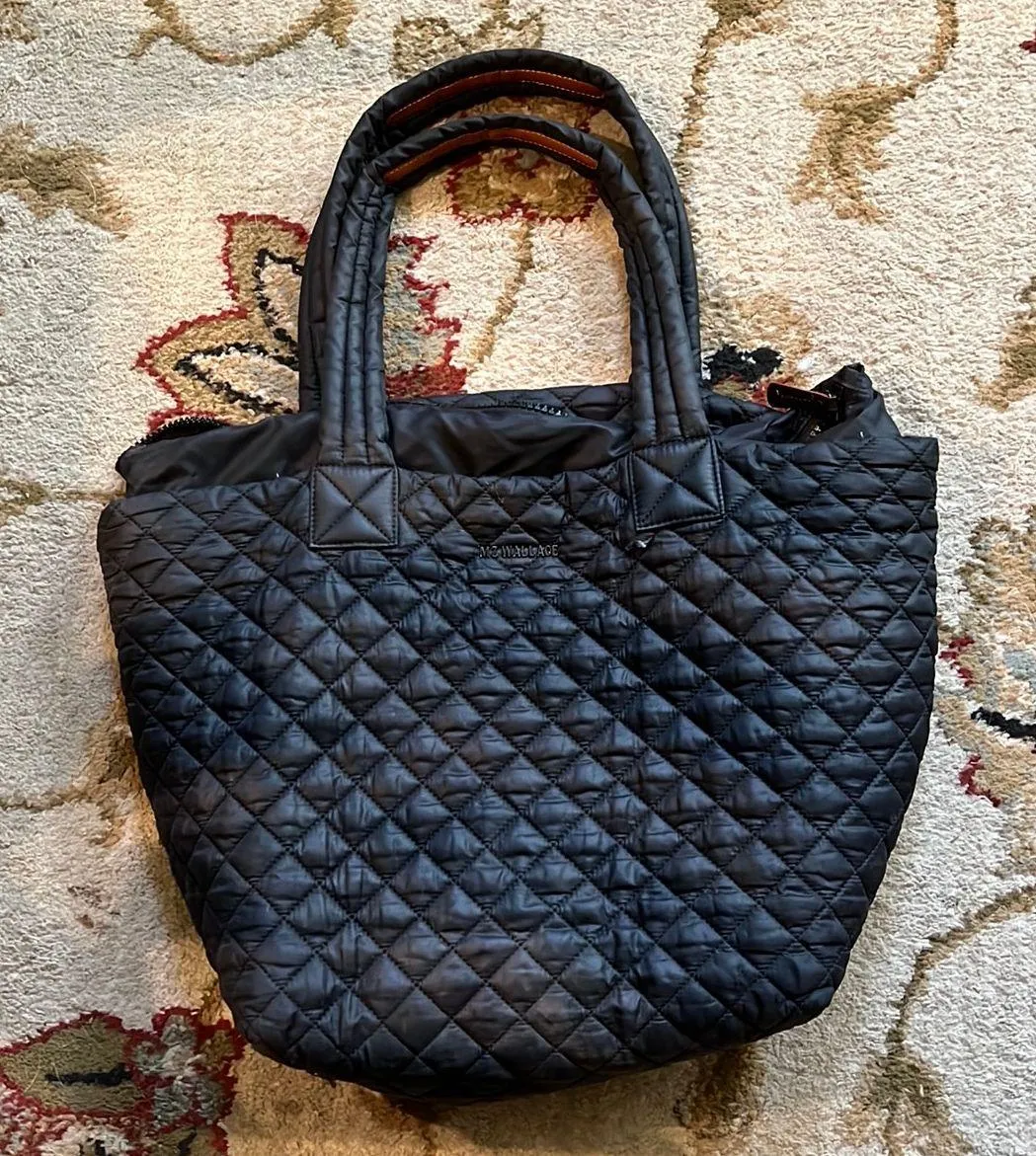 It’s in used condition but overall good - the flaws are pictured: two small holes in the quilting, there’s residue from non slip pads I put on the handles to keep it from slipping off my shoulder but they’re not visible at all since they’re on the bottom, and it’s also missing the zip pouch that comes with the original