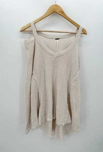 Free People Cream Moonshine V Neck Sweater Cold Shoulder Distressed, Knit texture. reversed distress... Show more