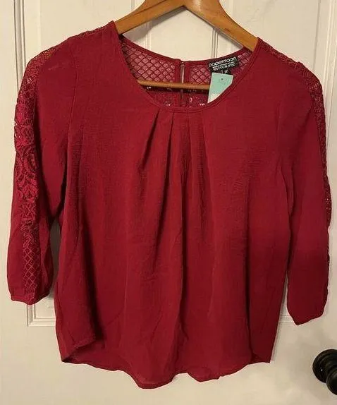Papermoon StitchFix Blouse Small Petite Shirt Top Lace Red Tunic Gold Button NEW - $18 New With Tags - From Krista