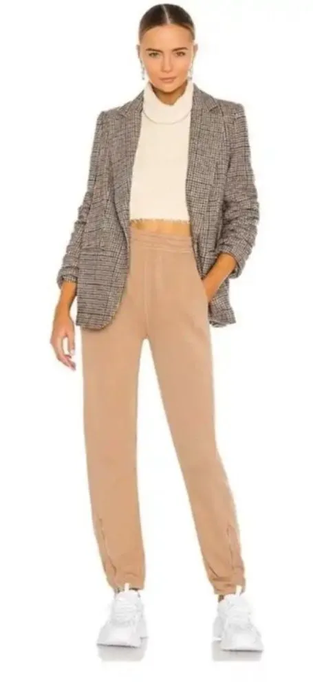 Relaxed fit jogger with diagonal style line and zipper down center front. Elastic waist, side seam pockets, and encased elastic at cuff. Hand sewn metal plaque on wearers' right back below waistband. 100% Cotton Wash cold delicate, like colors. Lay flat to dry. Imported Flat Measurements: Waist: 13” Rise: 10.5” Inseam: 29.5” 0042