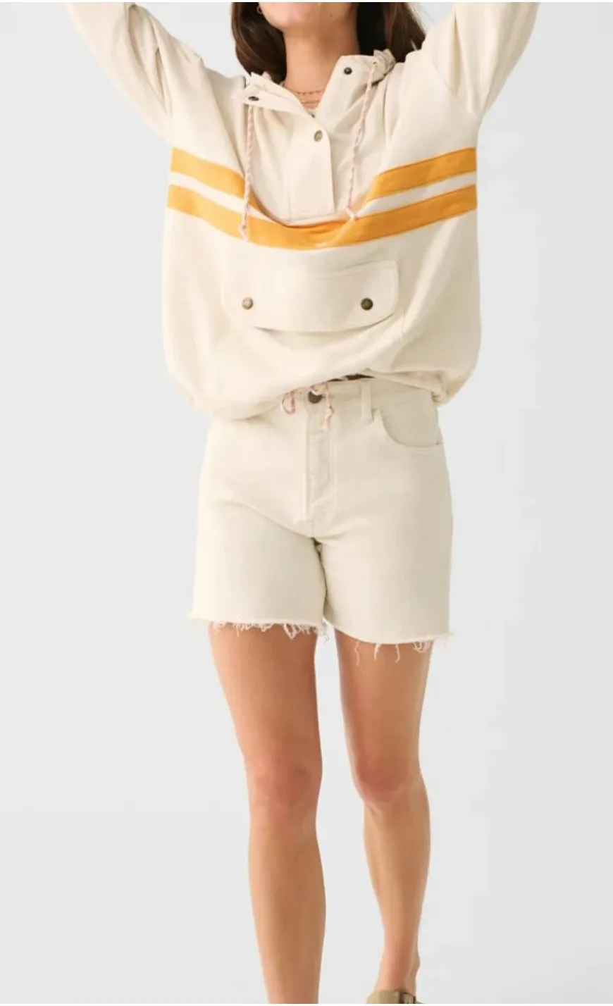 Faherty Women's Daybreak Hoodie in Morning Rays SMALL New Without Tags -kangaroo pocket -zipper and snap button collar -multi fleck drawcord string -100% Cotton Color: Morning Rays ( cream/orange/ Size: Small Style Tags: surf inspired, oversized, slouchy, coastal, beachy, sunshine, beach, vacation, cruise, travel, nautical, contemporary, casual, business casual, coastal, spring, summer, minimalist, travel, neutrals, outdoor