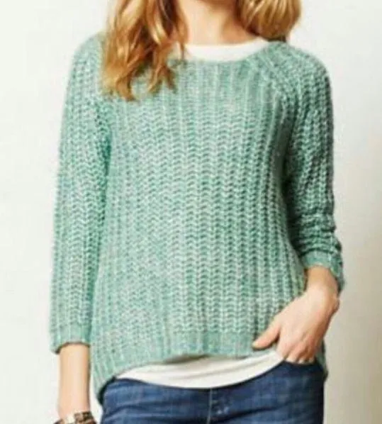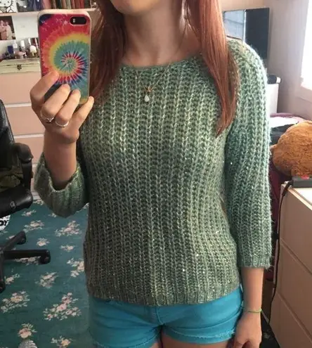 Anthropologie Knitted & Knotted sunstitch sweater in green with sequins. Size small.