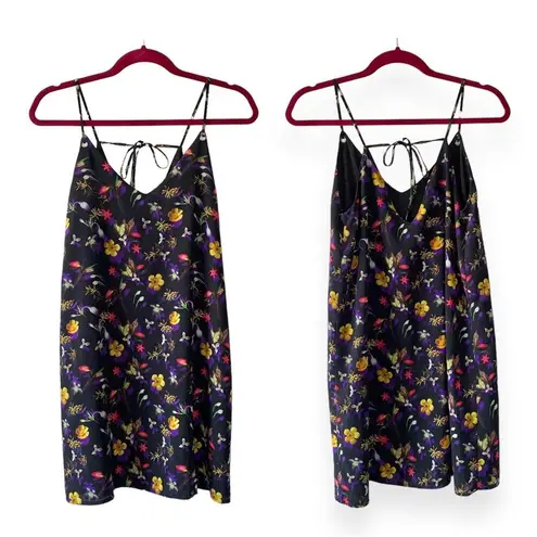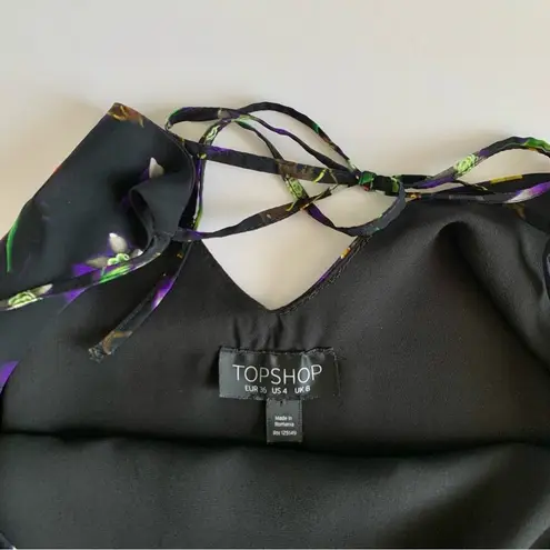 Features: Topshop Midnight Floral Black Multicolor Boho Style Shift Slip Mini Dress; strappy tank dr... Show more