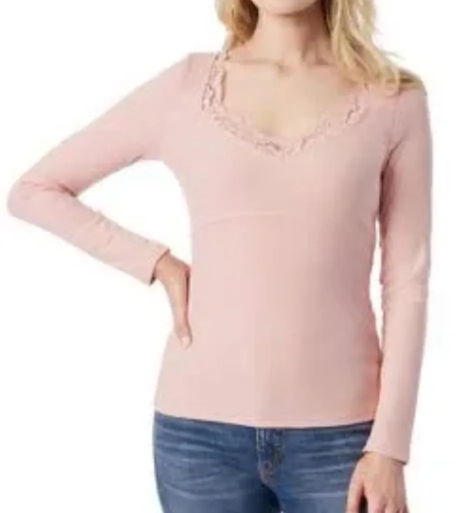 Elegant long-sleeve top with lace detail. Blush color. Ideal for any occasion.