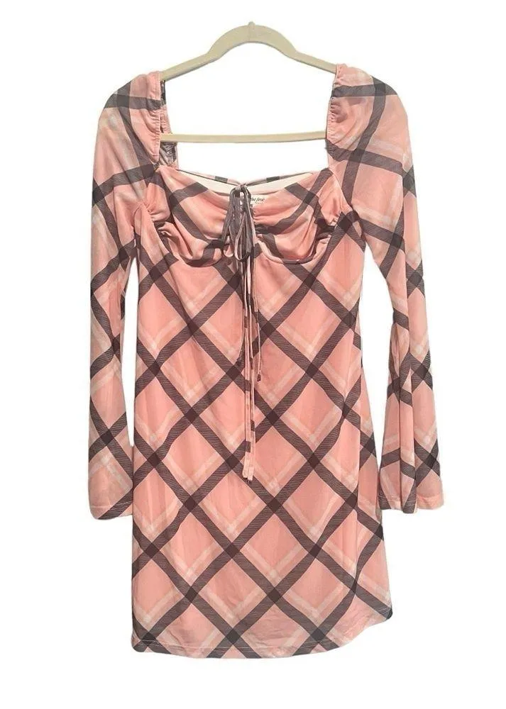 The Frolik Maternity Plaid Mesh Sleeve Mini Dress in Pale Pink, New without Tags Pink Size undefined - $50 - From Stephanie