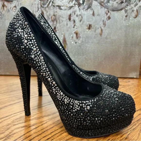 ALDO | Alalain Black Rhinstone Silver Studded Platform Stiletto Heels Size 8.5 ALDO ~ “Alalain” B... Show more