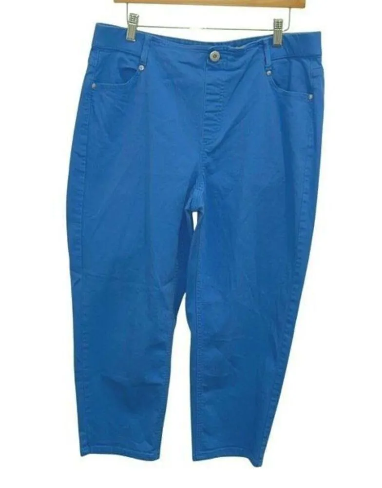 Description: J. Jill high-rise cropped pull on denim stretch jeans, royal periwinkle blue size 16 F... Show more