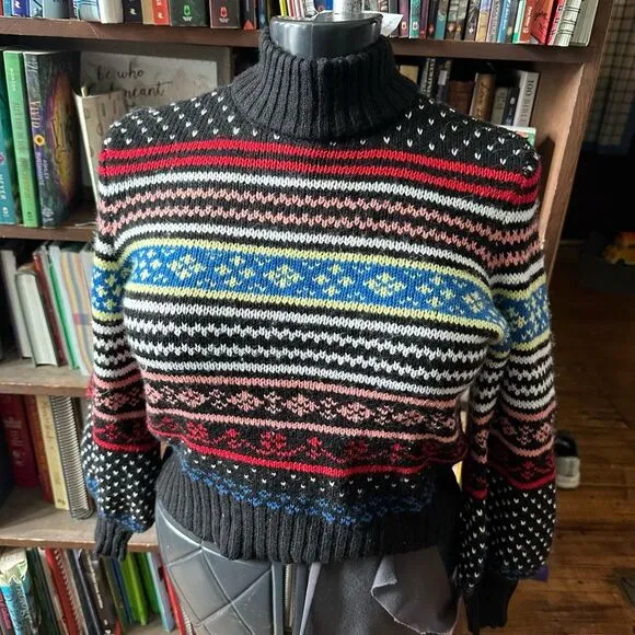 American Eagle fair isle, striped, ski, cozy, faux turtleneck, cropped sweater. Approximately 17 inc... Show more