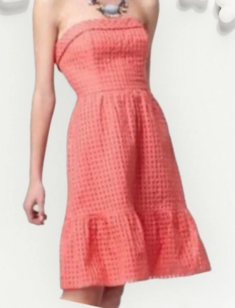 Vintage Anthropologie Y2K Hitherto Catherina coral Periwinkle Strapless Dress This strapless, silk-... Show more