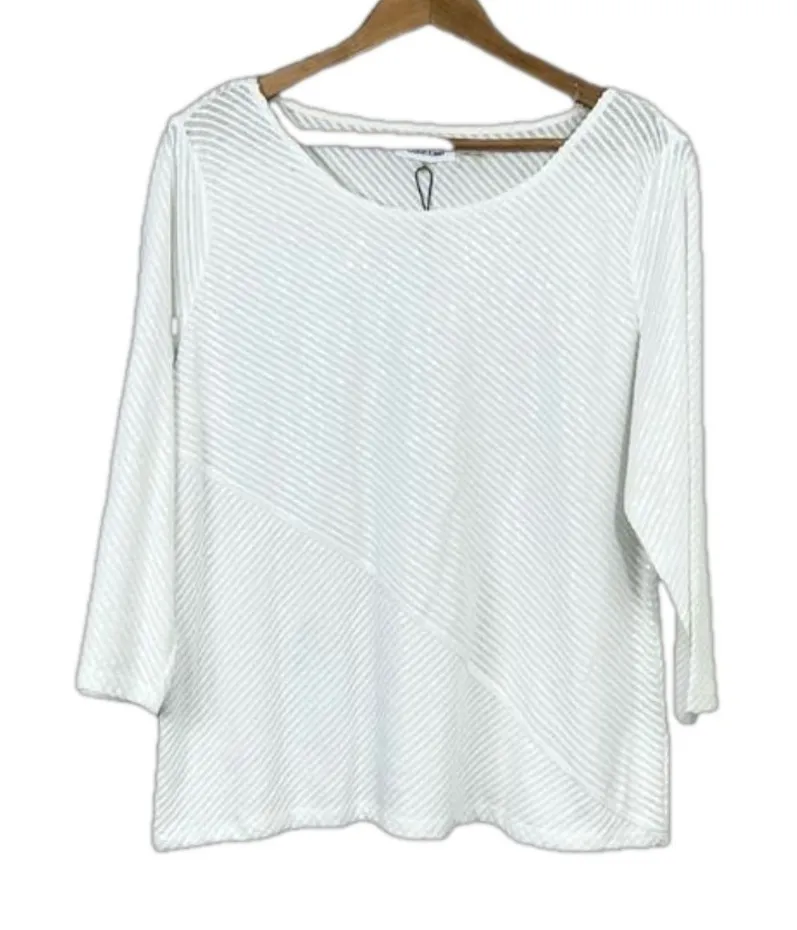 Calvin Klein Women's Sequin pullover top Crew Neck 3/4 Sleeve Size: XL White Please see photos... Show more
