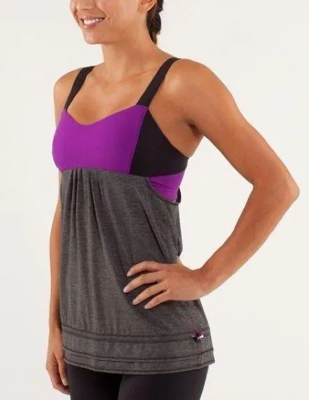 Lululemon Athletica Back On Track Tank Top in Black and Tender Violet. Running top wit built in bra... Show more