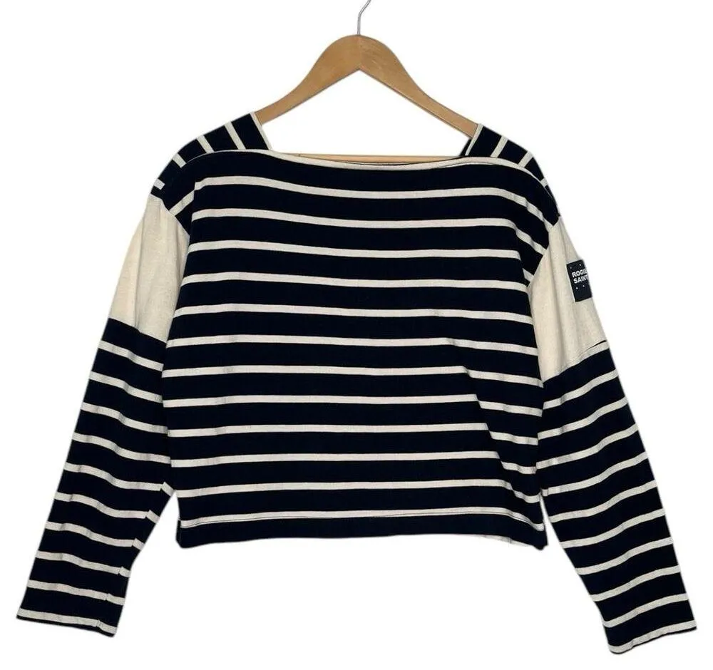 Zara Sweater Women's Blue White Striped Long Sleeve Square Neck Nautical Preppy Size Large - 100% C... Show more