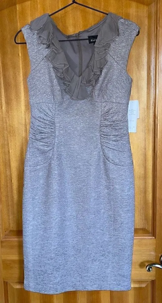 NWT Adrianna Papell Metallic Gray Dress Sz 4 *bust 14.5” *length 38.5” *waist 14”