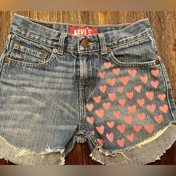 Painted Levi Shorts Button/Zipper Closure Levi’s 527 Content: 100% Cotton Measurements: Waist-14 inc... Show more