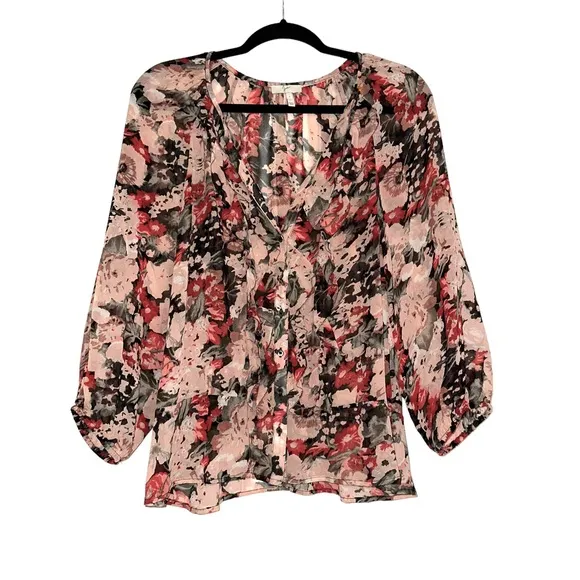 Joie Silk Floral Long Sleeve Button Down Ruffled Blouse Features: Button down Ruffle neck detailin... Show more