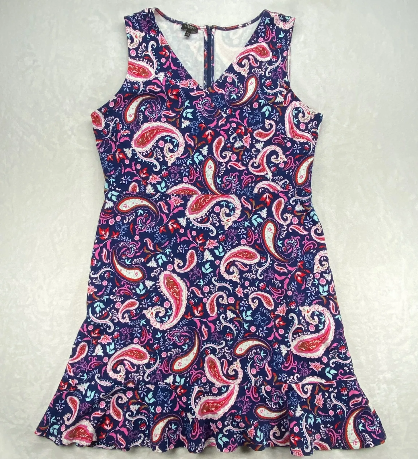 Keywords: Talbots dress, paisley dress, cotton dress, sleeveless dress, ruffle hem dress, petite dress, womens dress, casual dress, blue paisley dress, purple paisley dress, XL petite dress, summer dress, spring dress, printed dress, office siren, corpcore, officecore, lawyer, secretary, boardroom chic, legally blonde, clueless