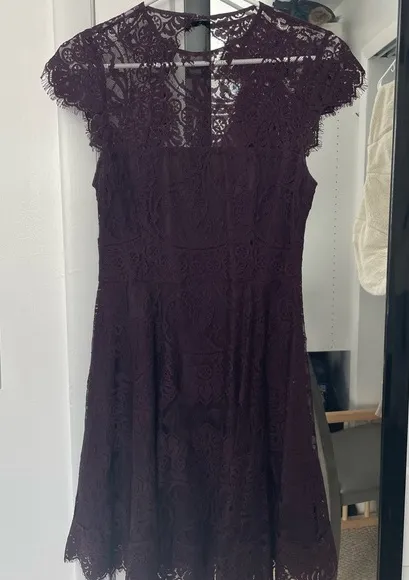 This stunning knee-length dress by BB Dakota features a rich purple color and delicate flutter cap s... Show more