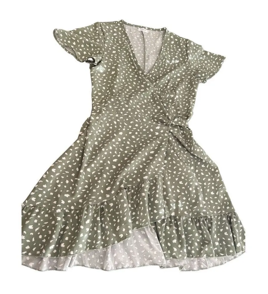 Naggoo Green Cream Wrap Tie Flare Sleeves Dress Women Floral Stylish size Small Gorgeous for sophist... Show more