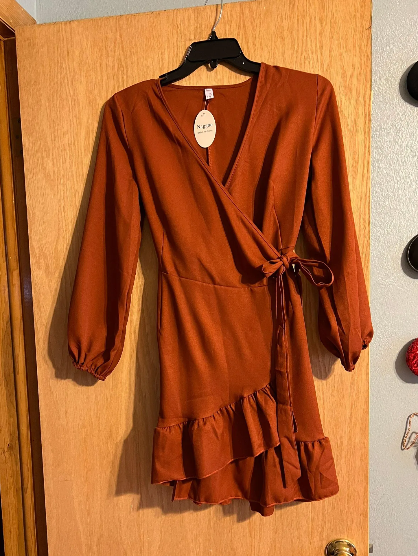 Nagoo Rust Colored Wrap Dress Size M - $15 - From Cassie