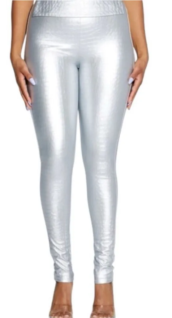 Naked Wardrobe Oh So Tight Crocodile Faux Leather Leggings Silver‎ M Silver Size M - $48 - From Nordic