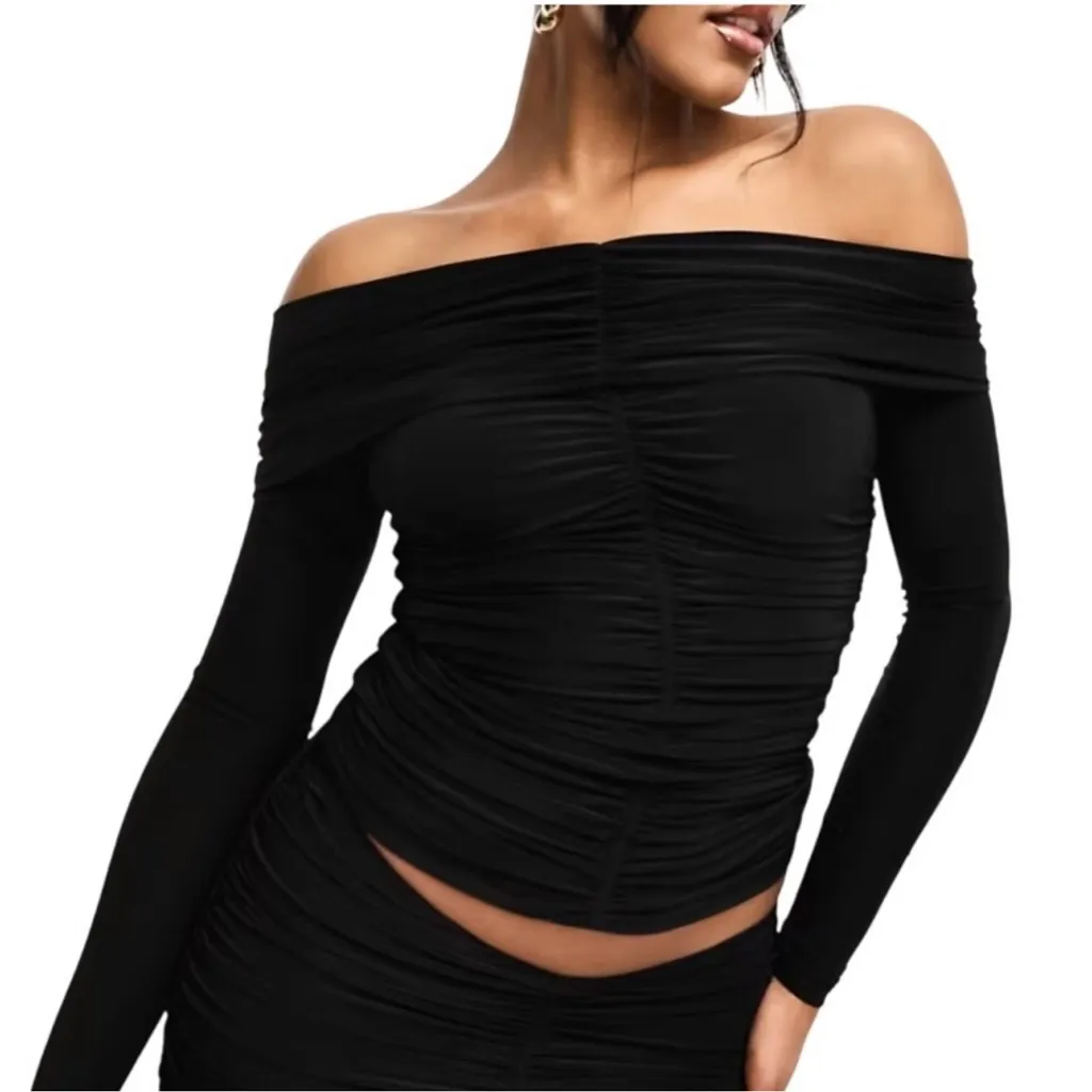 Naked Wardrobe Shoulderless Ruched Black Long Sleeve Top Date Night NWT Size M - $50 New With Tags - From Maryssa