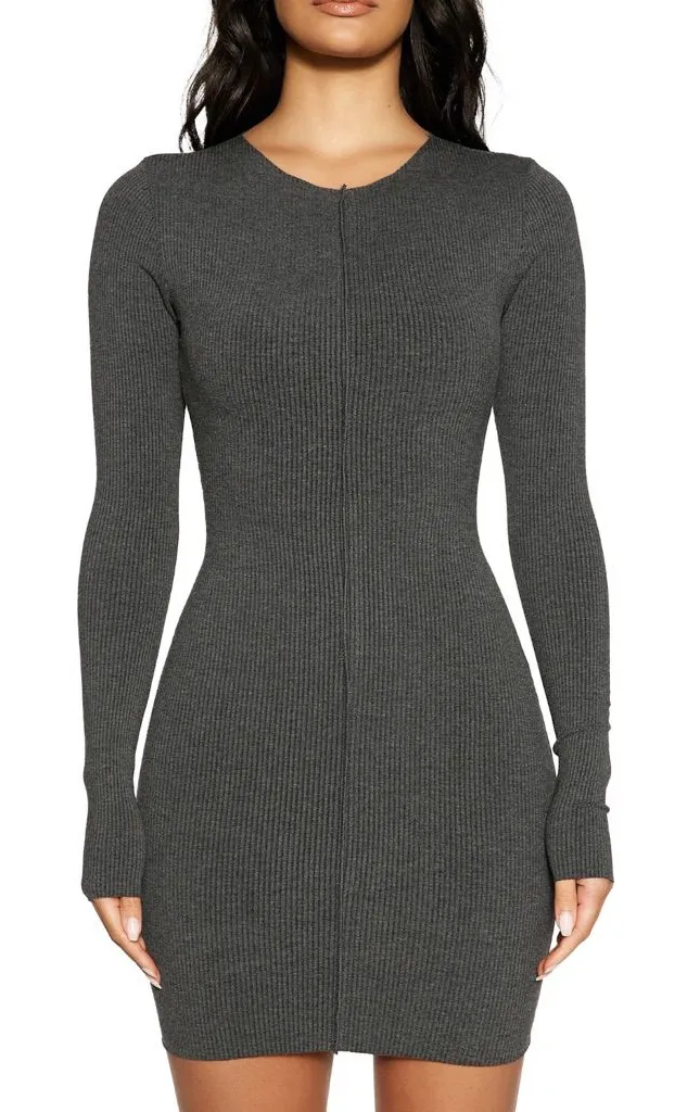 NAKED WARDROBE Snatched Vibes Long Sleeve Rib Knit Bodycon Minidress Gray Size XS - $38 - From Jenna