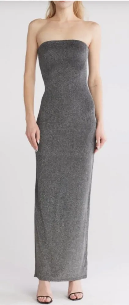 Naked Wardrobe Strapless Lurex Tube‎ Dress Gunmetal Silver 1X - $45 New With Tags - From Nordic