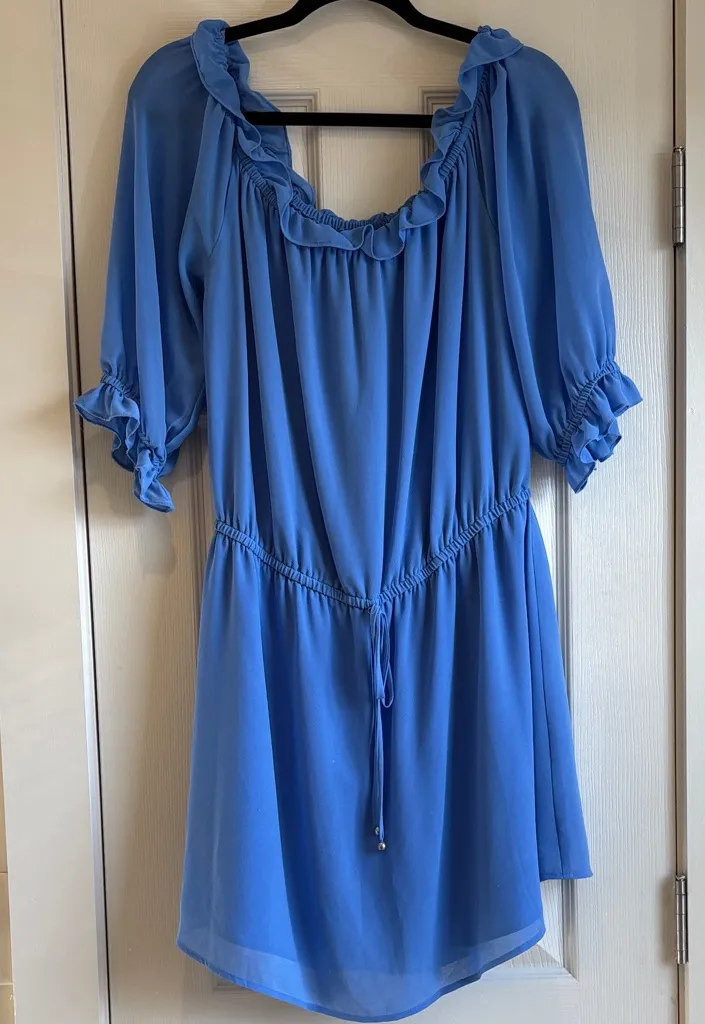 Naked Zebra | Blue Mini-Dress Elastic Neck/Sleeves Fully Lined Skirt Size Large - $29 - From Savannah