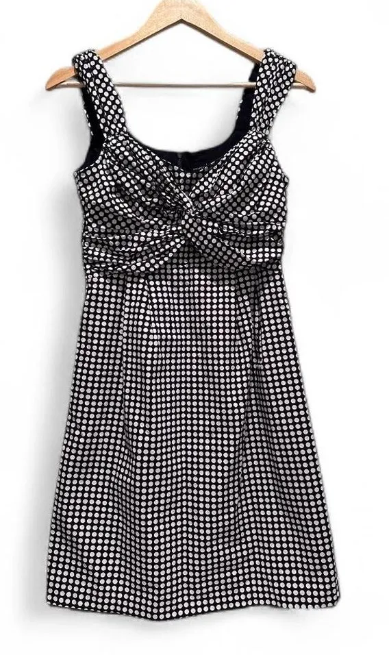 nanette lepore black and white polka dot mini dress sz 4 great, pre owned condition. cotton/spandex... Show more