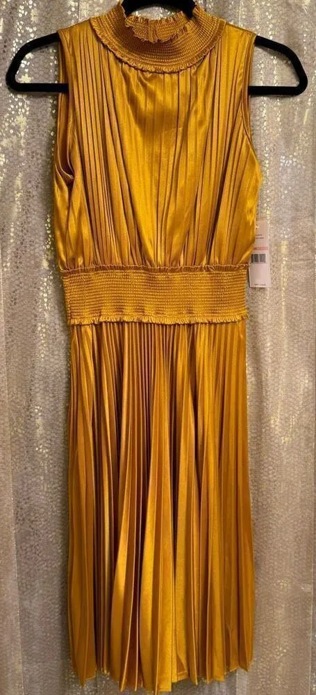 Nanette Lepore Medieval Gold Pleated High Neck Smocked Dress 2 NWT Brand new with tags, smoke and p... Show more