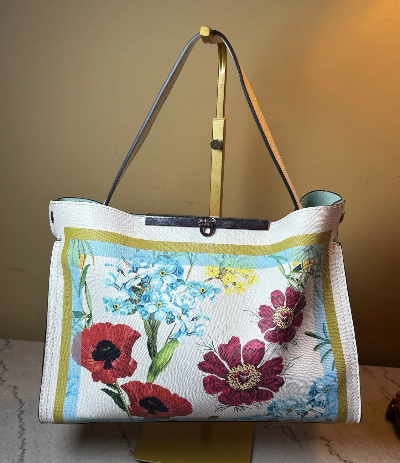 Brand: Nanette Lepore • Style: Structured floral tote bag • Color: White with multicolor floral pr... Show more