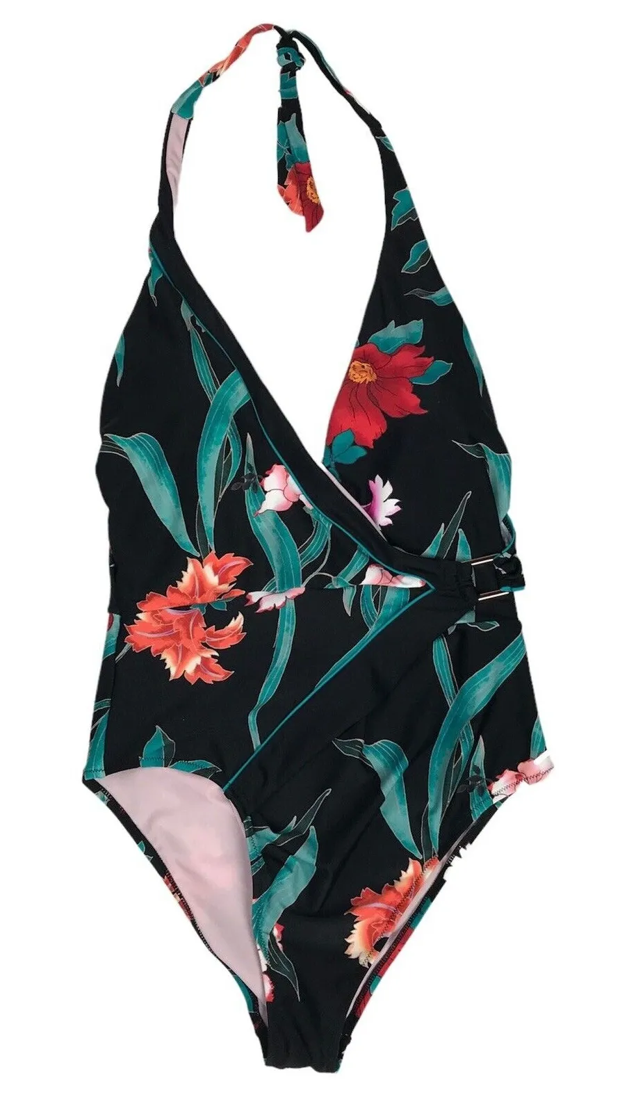 Nanette Lepore Poppy One Piece Swimsuit Black Floral Halter Size: 12 Condition: NWT Color: Black... Show more