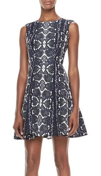 Nanette Lepore Size 10 Love Bites Snake Print Dress Blue Black Fit and Flare Brand: Nanette Lepore... Show more